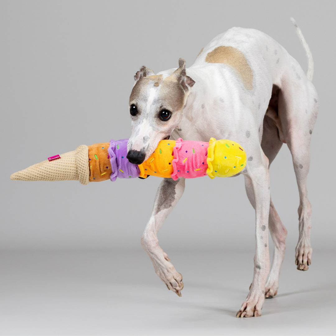 Ice Cream is a colorful ice-cream–shaped dog toy designed for fun, comfort, and stress relief. Made with a slow-rebound squeezable body and built-in sound, it provides satisfying bites that help dogs relax while staying entertained. The soft yet durable material supports chewing without hurting teeth, making it perfect for daily play, solo fun, and calming anxious pups. Cute, interactive, and high-value — Ice Cream turns every squeeze into a happy moment.